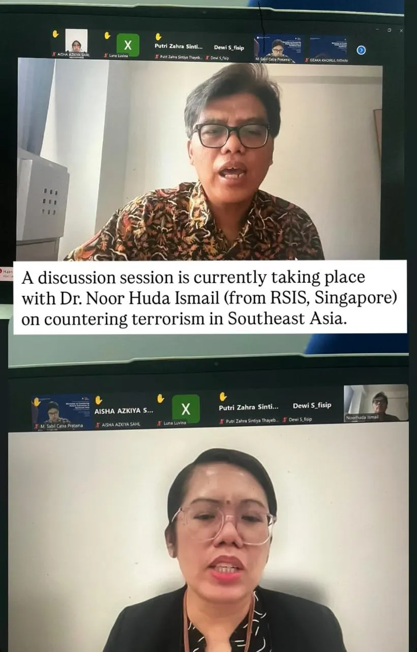 As a policy recommendation, Dr. Noor Huda highlighted the importance of producing credible counter-narratives, particularly through the voices of former members of extremist groups who have now chosen a peaceful path. He also encouraged collaboration between governments, civil society, and digital technology companies such as Facebook, Google, Twitter, and TikTok to limit the spread of online extremist narratives.