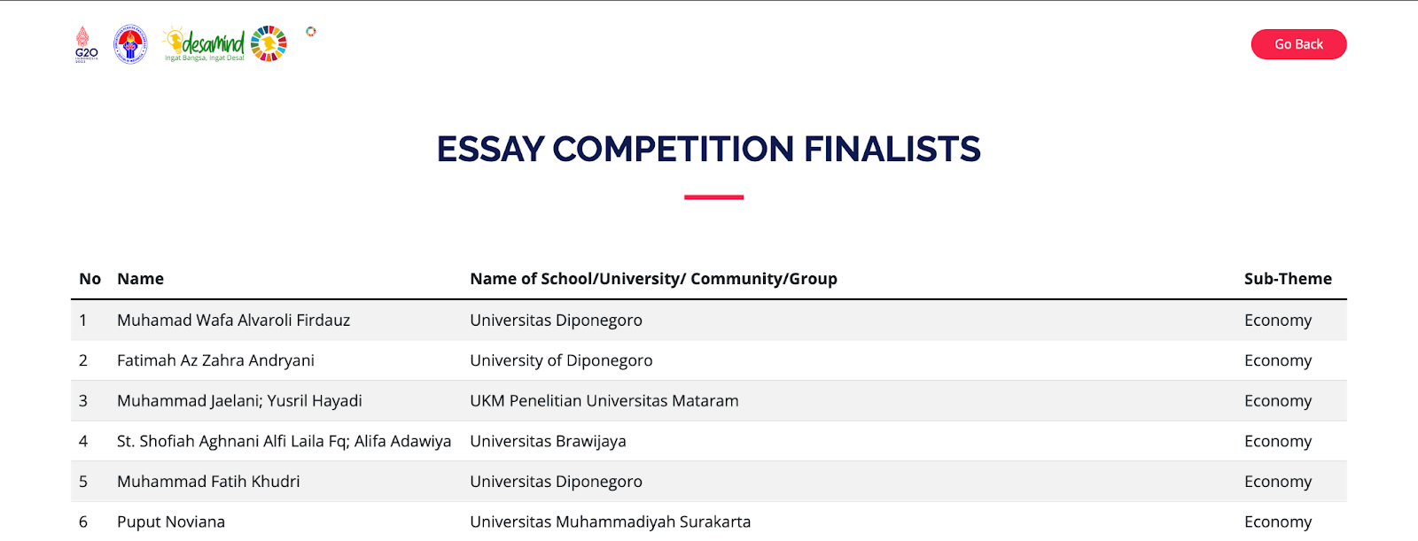 Kompetisi internasional ini menjadi wadah bagi generasi muda dari berbagai negara untuk menyampaikan gagasan inovatif terkait pembangunan desa yang berkelanjutan, sejalan dengan agenda Sustainable Development Goals (SDGs).